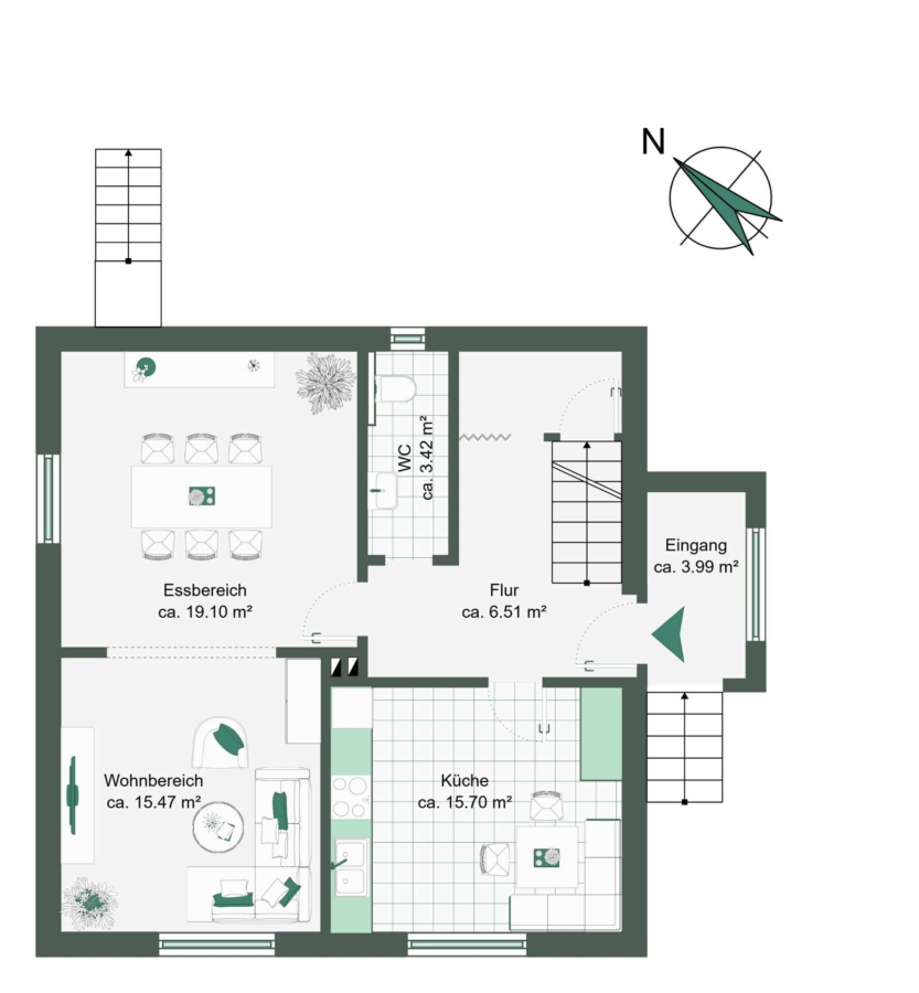 Bereits die Lage vermittelt ein Gefühl von Privatsphäre und Beständigkeit. Umgeben von gepflegter Nachbarschaft und viel Grün verbindet dieses Zuhause angenehme Ruhe mit hervorragender Infrastruktur.