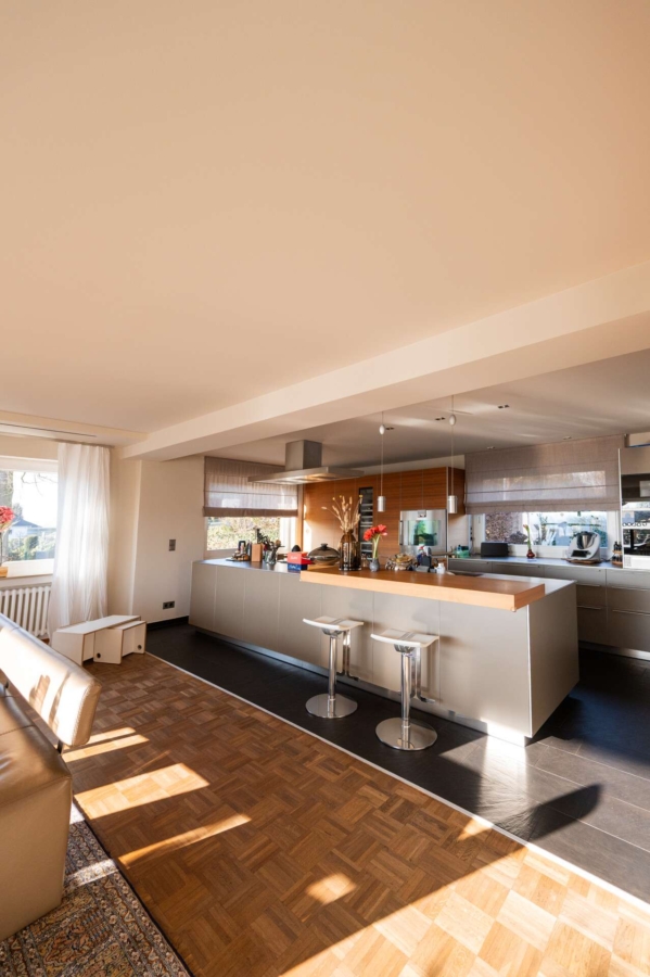 Ein besonderes Highlight ist die exklusive Designküche, die Funktionalität und Ästhetik auf hohem Niveau vereint und sich nahtlos in den Wohnbereich einfügt.
