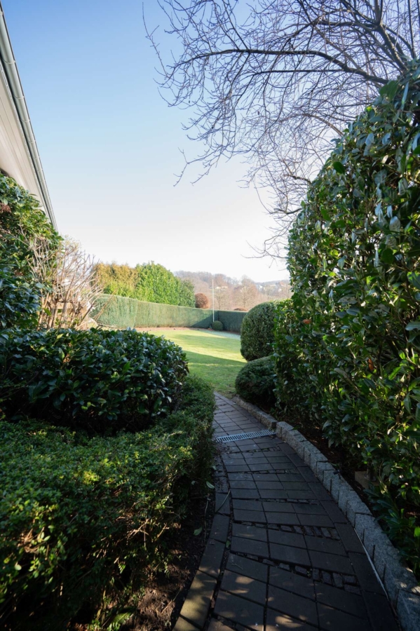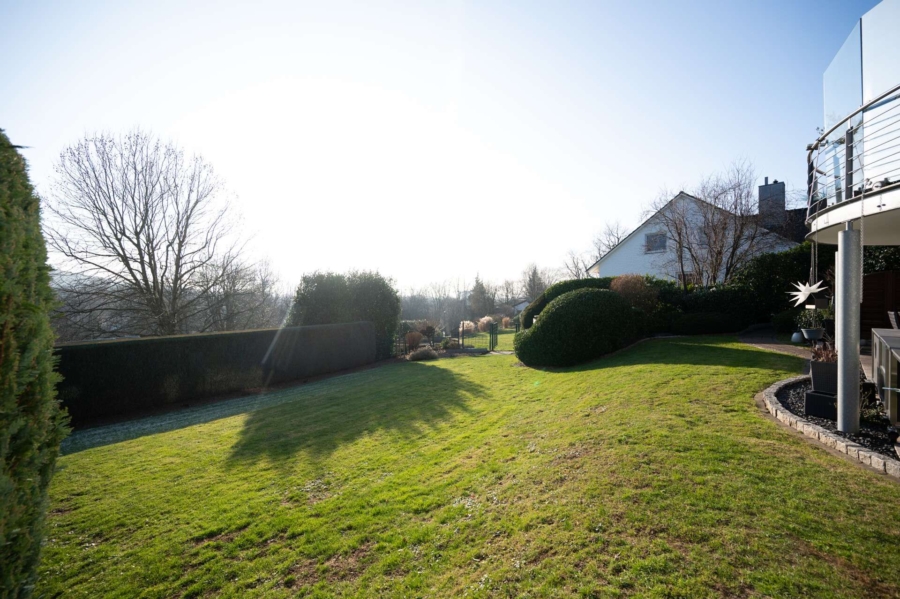 Die leichte Hanglage des Grundstücks sorgt für eine optimale Belichtung der Wohnräume, schöne Ausblicke ins Grüne und ein hohes Maß an Privatsphäre.