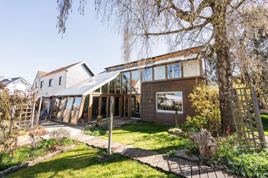 Ein besonderes Highlight dieses Hauses ist der lichtdurchflutete Wintergarten, der 1992 als stilvolle Ergänzung an den Wohnbereich angebaut wurde. Er öffnet sich zum liebevoll angelegten Garten mit Teich, Gewächshaus und praktischem Geräteschuppen – ein perfekter Rückzugsort für alle, die Ruhe und Natur zu schätzen wissen.