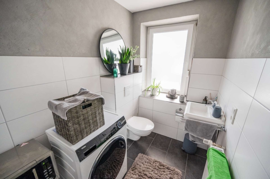Die darüberliegende Wohneinheit im Obergeschoss sowie die ergänzenden Flächen im ausgebauten Dachgeschoss sind baulich vollständig abgeschlossen, separat erschlossen und aktuell zuverlässig vermietet. Diese klare Trennung sorgt für eine konfliktfreie Nutzung des Hauses und schafft eine stabile, langfristige Struktur. Ein besonderes Highlight stellt die großzügige Dachterrasse dar, die dem Wohnbereich eine außergewöhnliche Aufenthaltsqualität mit hoher Privatsphäre bietet.