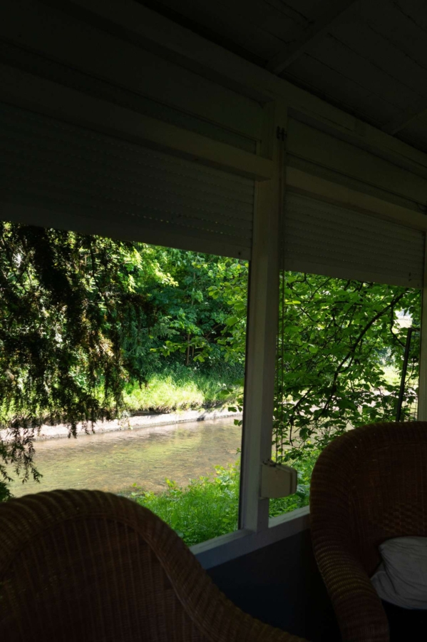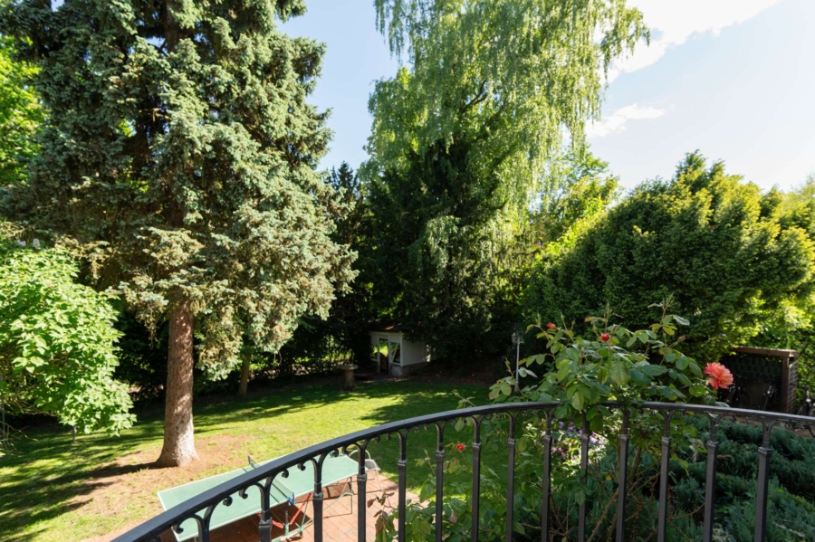 Vier Balkone/Dachterrassen sowie ein Freisitz bieten einen herrlichen Blick auf das 1.135 m² große Grundstück, das direkt an die Aa grenzt. Das ca. 100-jährige Gartenhaus mit Heizstrahler und Rolläden lädt zum Verweilen ein. Ein überdachter Fahrradabstellplatz, ein Doppelstabgitterzaun mit schmiedeeisernem Gartentor sowie ein geschützter Grillplatz sorgen für Sicherheit und Komfort.