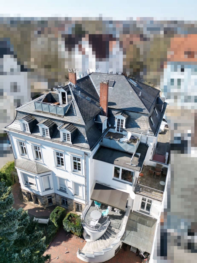 Vier großzügige Balkone/Dachterrassen sowie ein idyllischer Freisitz eröffnen einen herrlichen Blick auf das 1.135 m² große Grundstück und laden zum Verweilen ein. Isolierverglaste Holzfenster bewahren den charakteristischen Altbau-Stil und tragen gleichzeitig zur verbesserten Energieeffizienz bei. Die aufwendig restaurierte Fassade (2005) sowie das langlebige Schieferdach unterstreichen die hochwertige Bausubstanz.