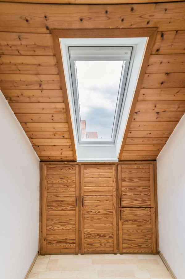 Das Gebäude verfügt über ein Kaltdach, das konstruktiv für eine gute Belüftung im Dachraum sorgt. Es wurde eine Zwischensparrendämmung mit Dampfsperre eingebracht und der Dachboden vollflächig gedämmt, ein wirkungsvoller Beitrag zur Energieeinsparung, insbesondere in Verbindung mit der Fassadeneinblasdämmung im zweischaligen Mauerwerk.