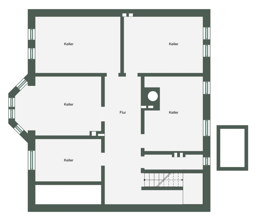 Ein klassisch gemauerter Keller bietet funktionalen Stauraum und eine gute Ergänzung zum Wohnraum.