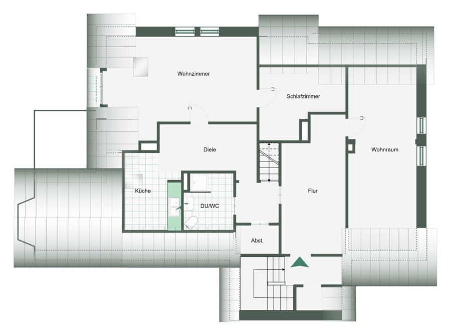 Sowohl das Erdgeschoss, als auch das Dachgeschoss sind ab dem 01.03. frei verfügbar.