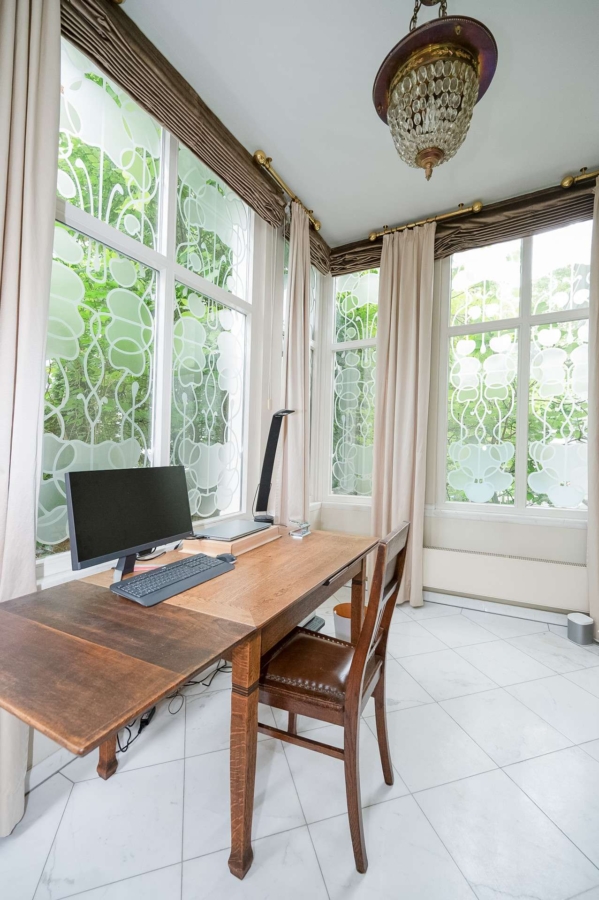 Maßgefertigte Einbauschränke, raumhohe Holztüren und Messing-Spots unterstreichen den handwerklichen Anspruch, genauso wie die dreifachverglasten Holzfenster mit Sicherheitsglas und stilvollen Marmorfensterbänken.
