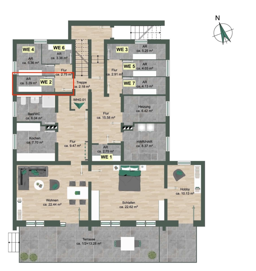 Dachgeschoss links - 76 m² Wohnfläche - WE 7