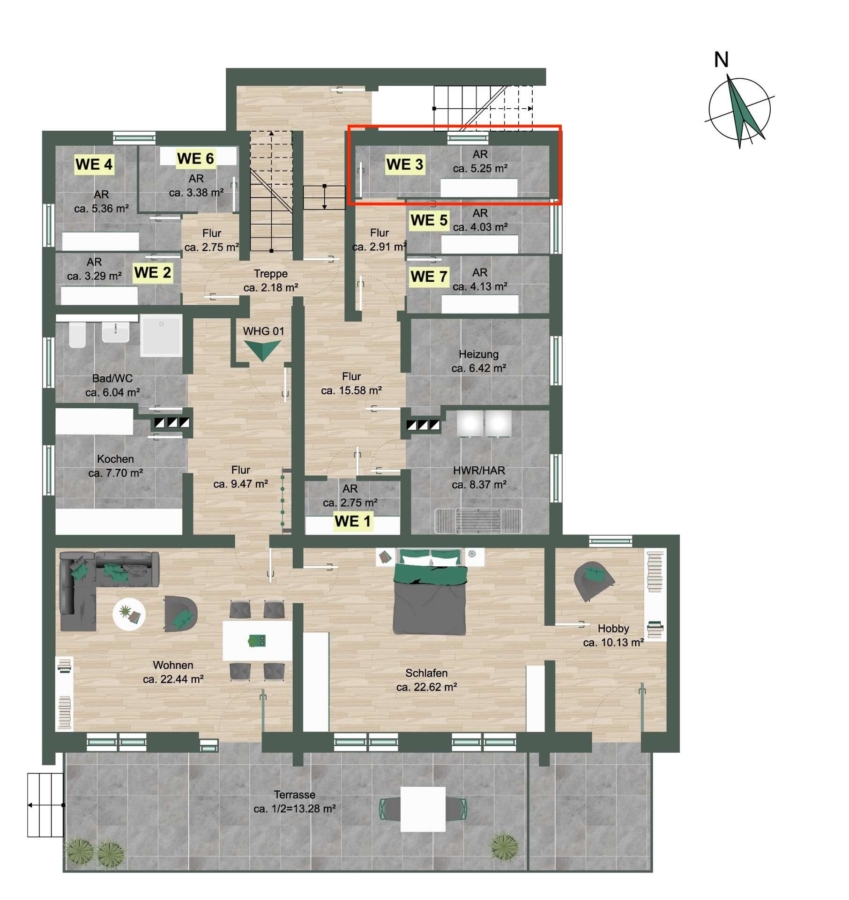 Das Gesamtobjekt setzt sich aus den folgenden Wohnungen zusammen:
