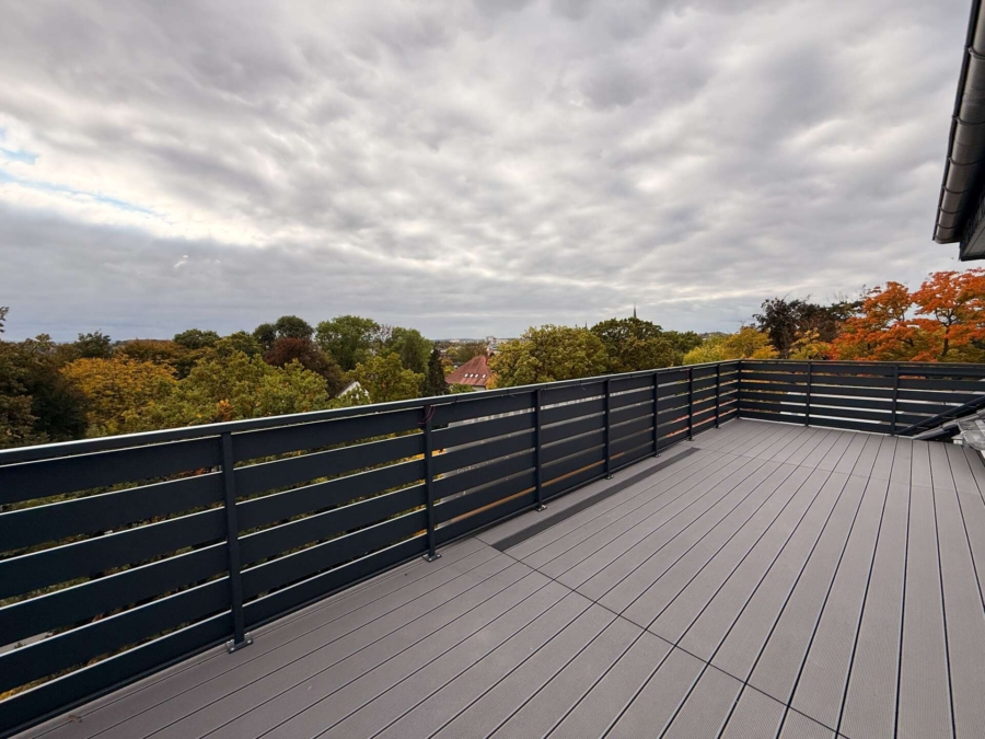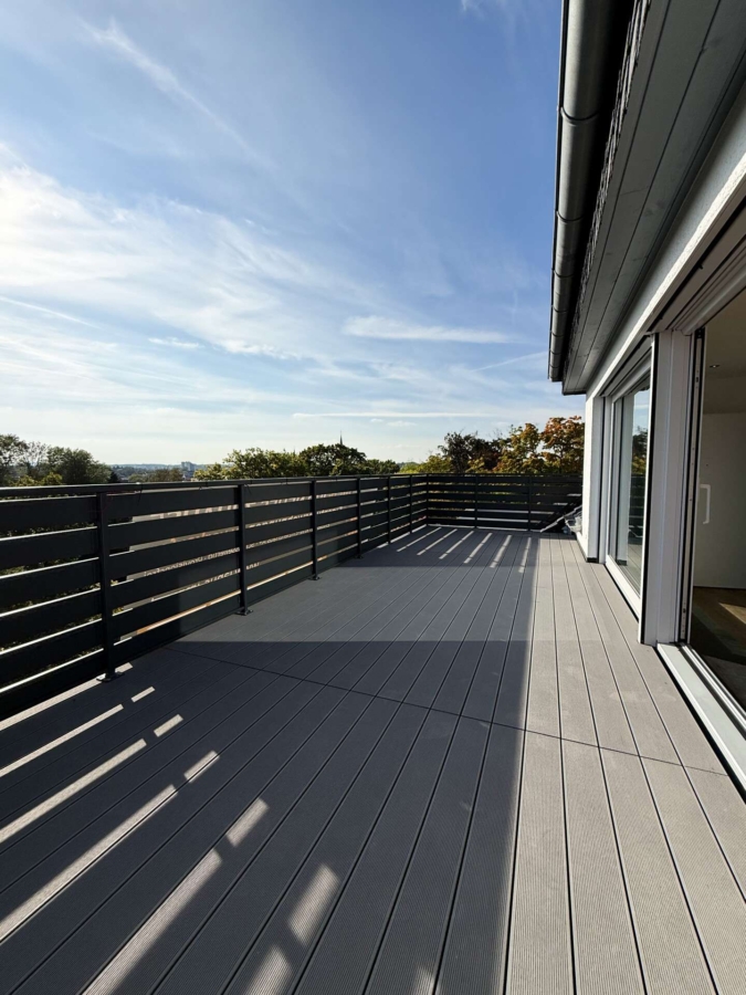 Ein besonderes Highlight ist die riesige Südwest-Terrasse mit freiem Fernblick über ganz Herford bis hin zum Teutoburger Wald, ideal für Sonnenuntergänge, entspannte Abende und gesellige Momente. Die zweite Terrasse in Nordausrichtung bietet einen ebenso eindrucksvollen Blick bis zum Wiehengebirge, ein Rückzugsort mit Weitblick.