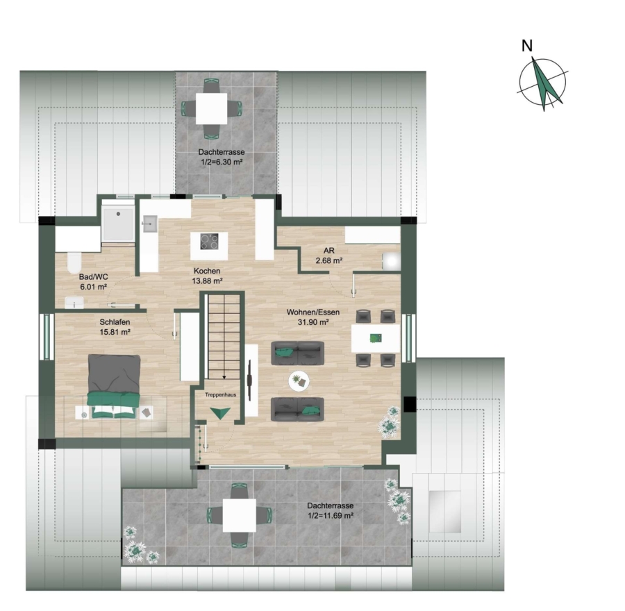 Dachgeschoss rechts - 61 m² Wohnfläche - WE 6 - VERKAUFT