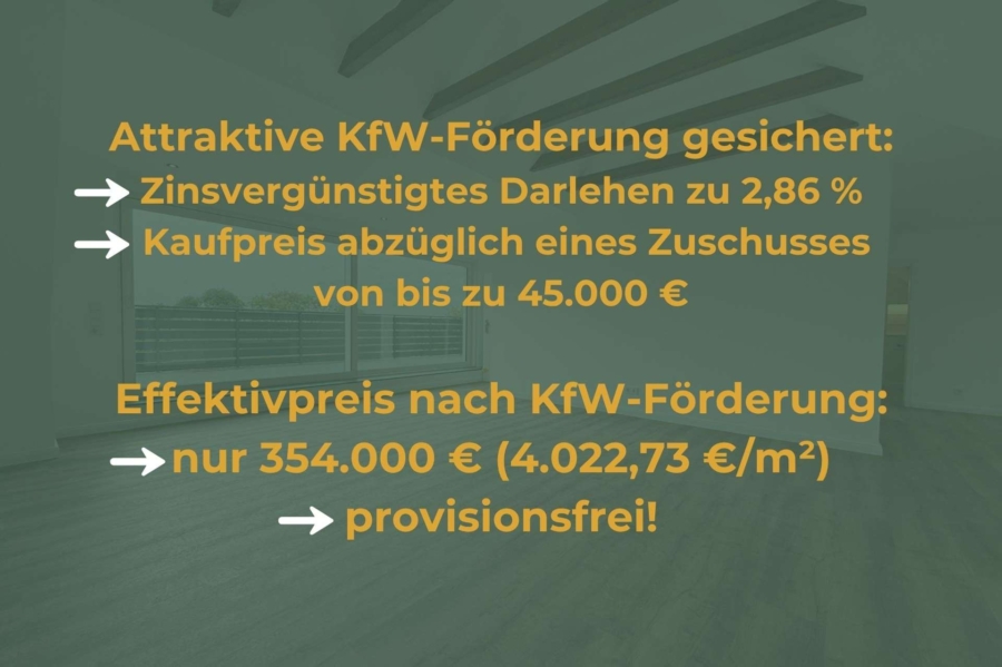 Effektivpreis nach KfW-Förderung: nur 354.000 € (4.022,73 €/m²) – provisionsfrei!